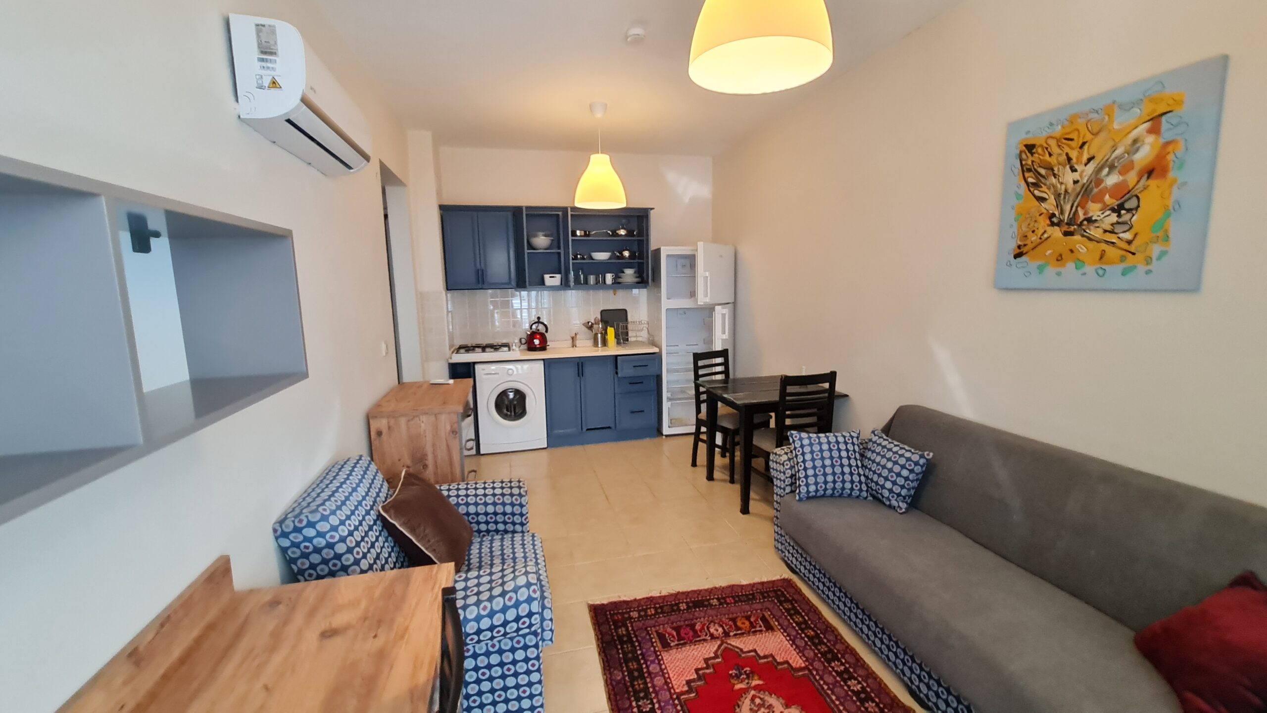 60 m² büyüklüğündeki bu tek yatak odalı dairede ayrıca bir oturma odası, bir banyo ve bir mutfak yer alır. Balkonunuzdan dağ ve bahçe manzarasının keyfini çıkarabilirsiniz. Dairede 3 kişiye kadar konaklama imkanı sunulmaktadır. Klimalı dairede konforunuz için çamaşır makinesi ve ütü olanakları sağlanmıştır. Kablosuz internet sağlanmaktadır. Duşlu özel banyonuzda saç kurutma makinesi, ücretsiz banyo malzemeleri ve havlu seti mevcuttur. Mutfakta buzdolabı, ocak, elektrikli su ısıtıcısı ve diğer mutfak gereçleri bulunmaktadır.